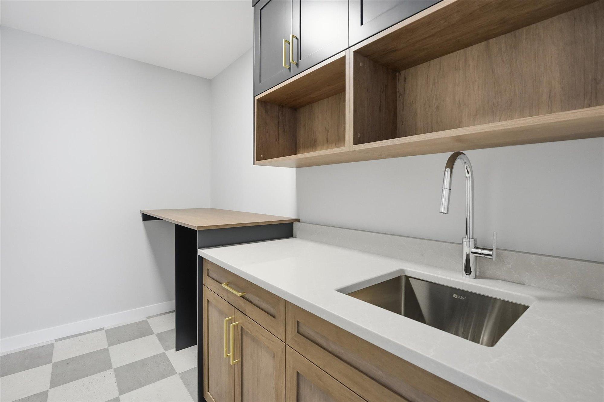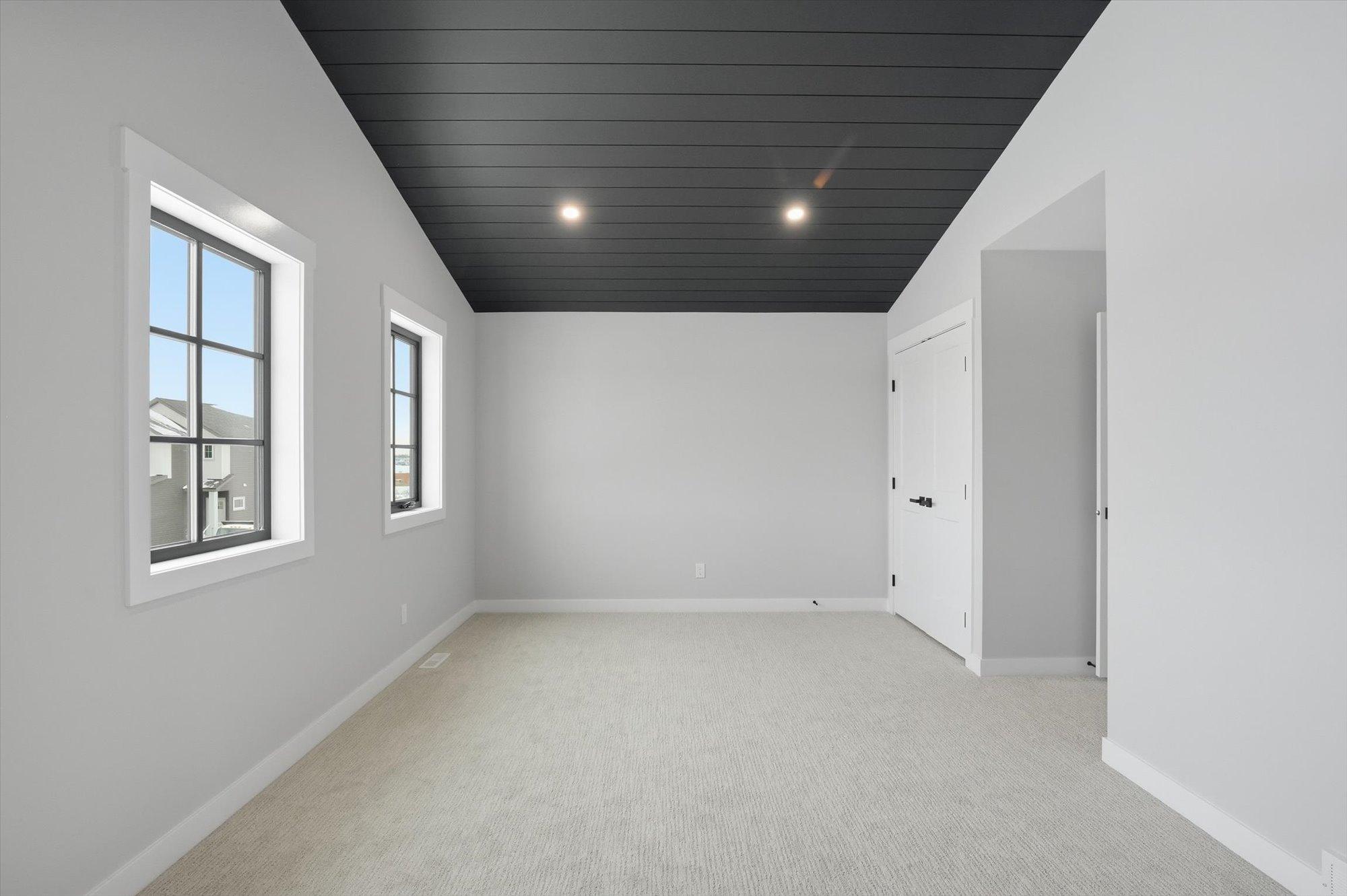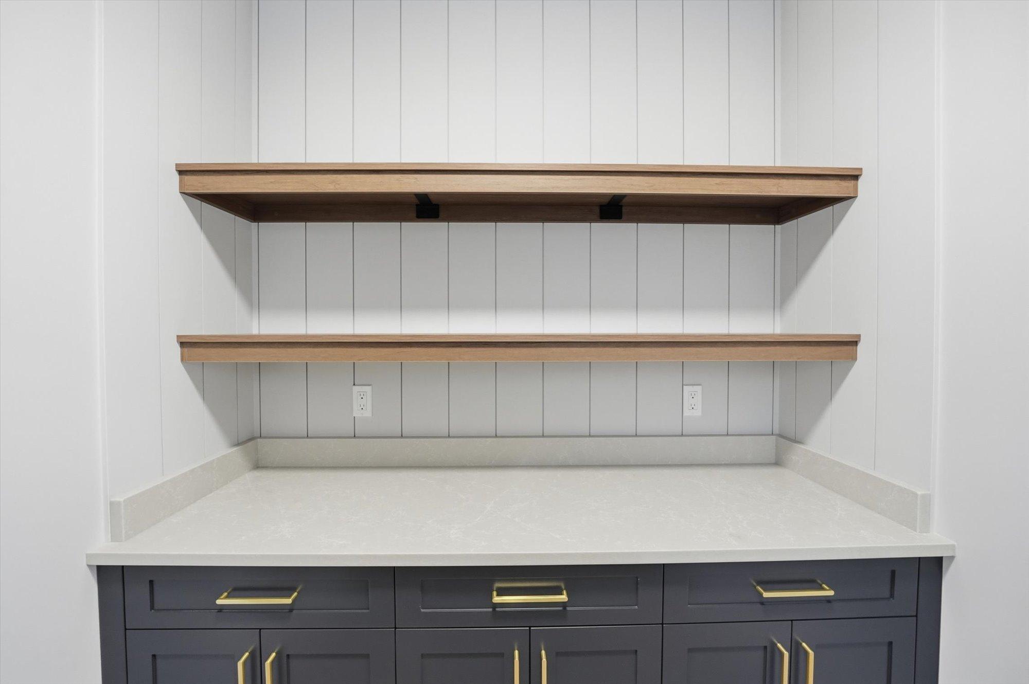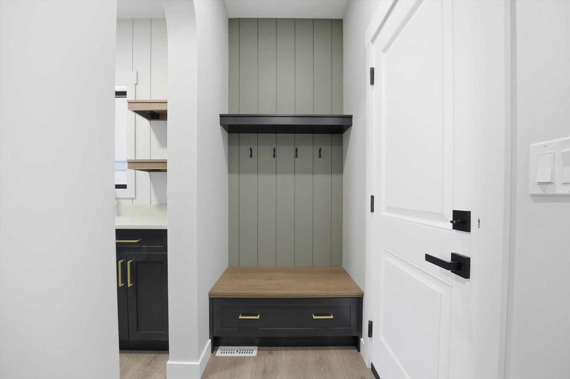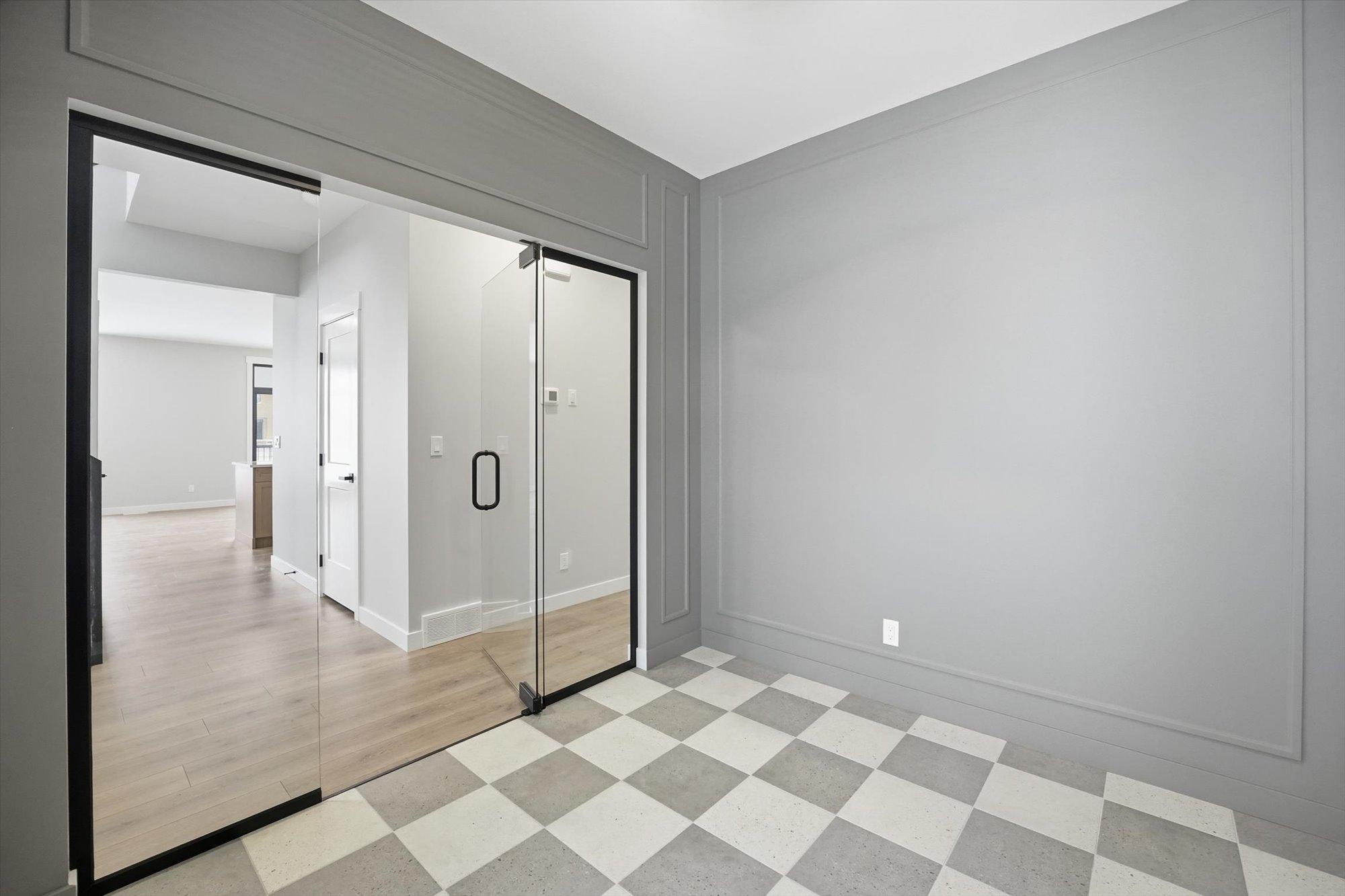 Entering the home from the insulated and boarded garage, you step into the mud room area, with bench and locker area for a quick disposal of outerwear. The mudroom is conveniently attached to the walk through pantry containing Tafisa shelving and brackets for ample storage of your groceries. This home also features a spice kitchen in the pantry with a sink, window and a lower bank of cabinets. This area is great for a coffee bar and extra prep area. Entering the kitchen, you will find beautiful cabinets to ceiling including an oversized island, undermount lighting, backsplash tile and quartz countertops. The great room features large windows, and oversize patio door for an abundance of natural light, and the fireplace is a stunning focal point in the room. The addition of the flex/office area adjacent to the front entrance is a perfect work from home space.