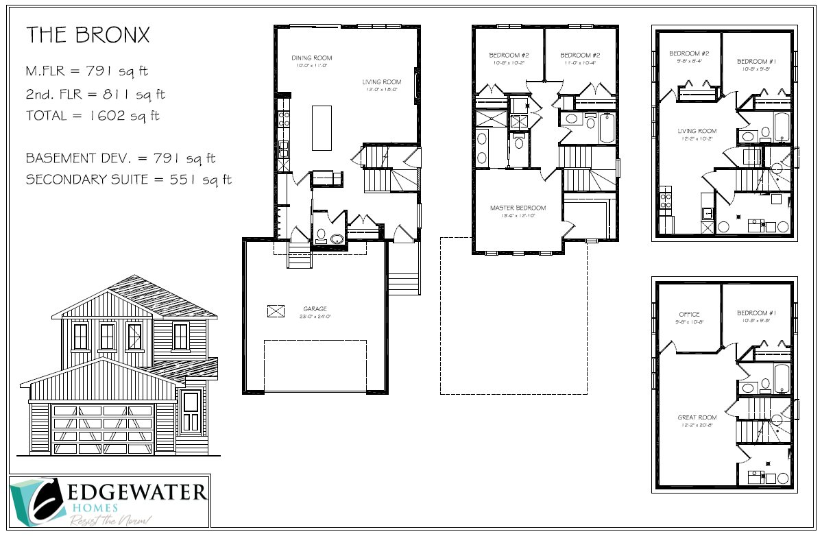 Are you looking for an affordable option in a home with an attached garage? Edgewater introduces this plan available with their signature finishings. Welcome to The Bronx! A 1591 sq ft home. The basement can be outfitted with infrastructure for a 2 bedroom suite.